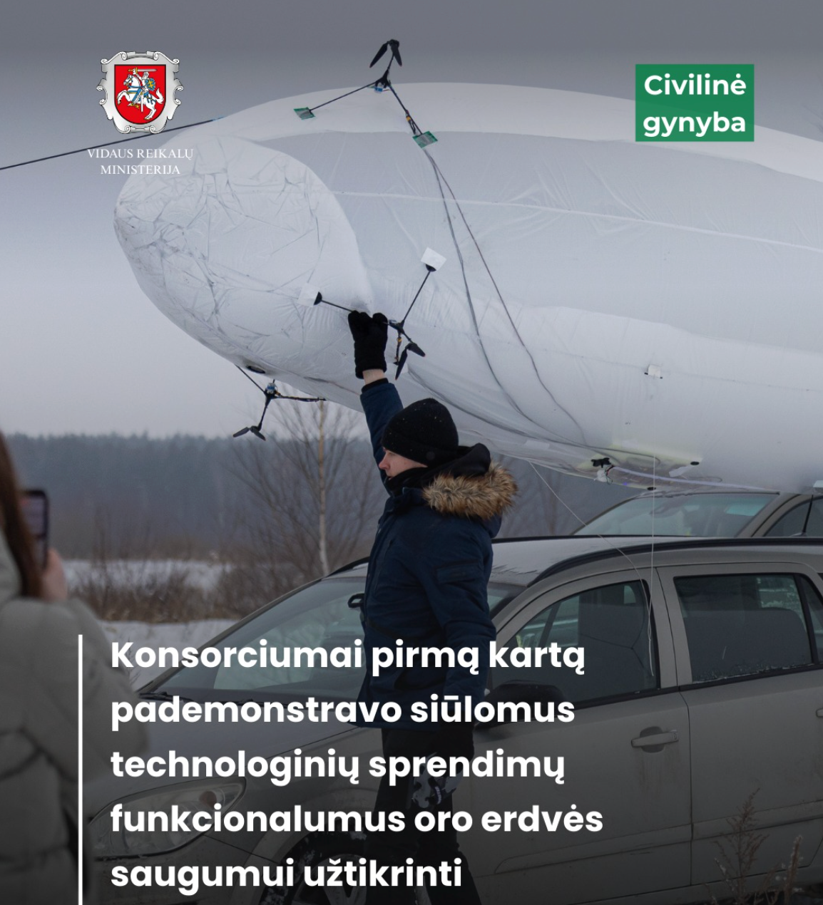 A week-long testing exercise “C.U.A.S February 26” took place at the General Silvestras Žukauskas training ground in Pabradė, focusing on countering unmanned and uncontrolled aerial systems. During the exercise, newly developed technologies designed to detect and neutralize drones and other aerial targets, such as meteorological balloons, were tested.