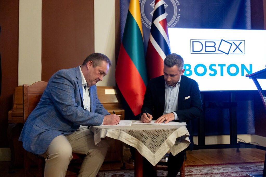 The agreement was signed by Dr. Linas Gelažanskas, CEO of IT logika (DBOX), together with Claus Holm, CEO of Boston Group A/S.